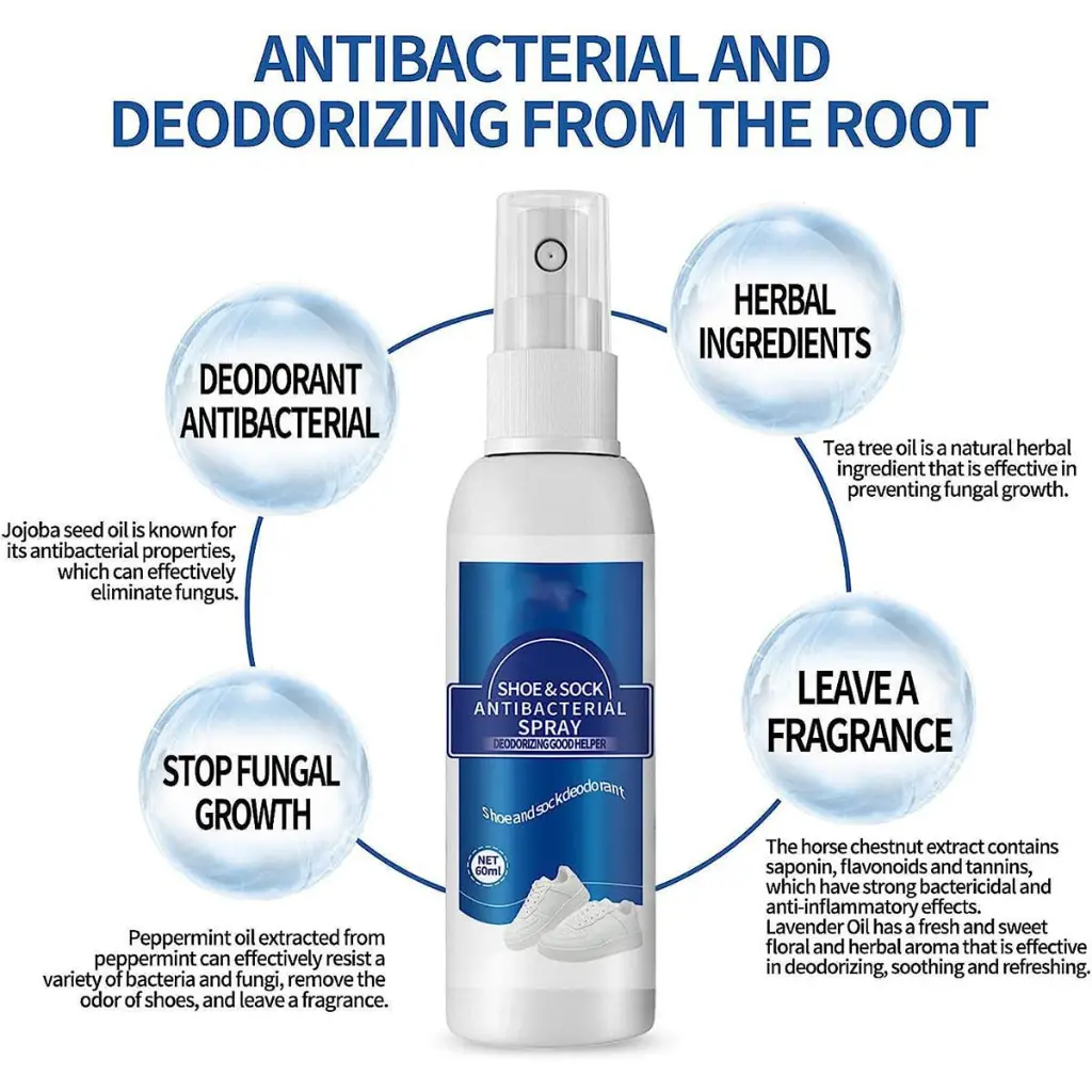 Keep your shoes and socks fresh with this natural deodorizing spray. Formulated with tea tree and peppermint oils, it eliminates odors and provides long-lasting freshness. Suitable for all footwear, it’s safe, non-toxic, and perfect for athletes and everyday users.