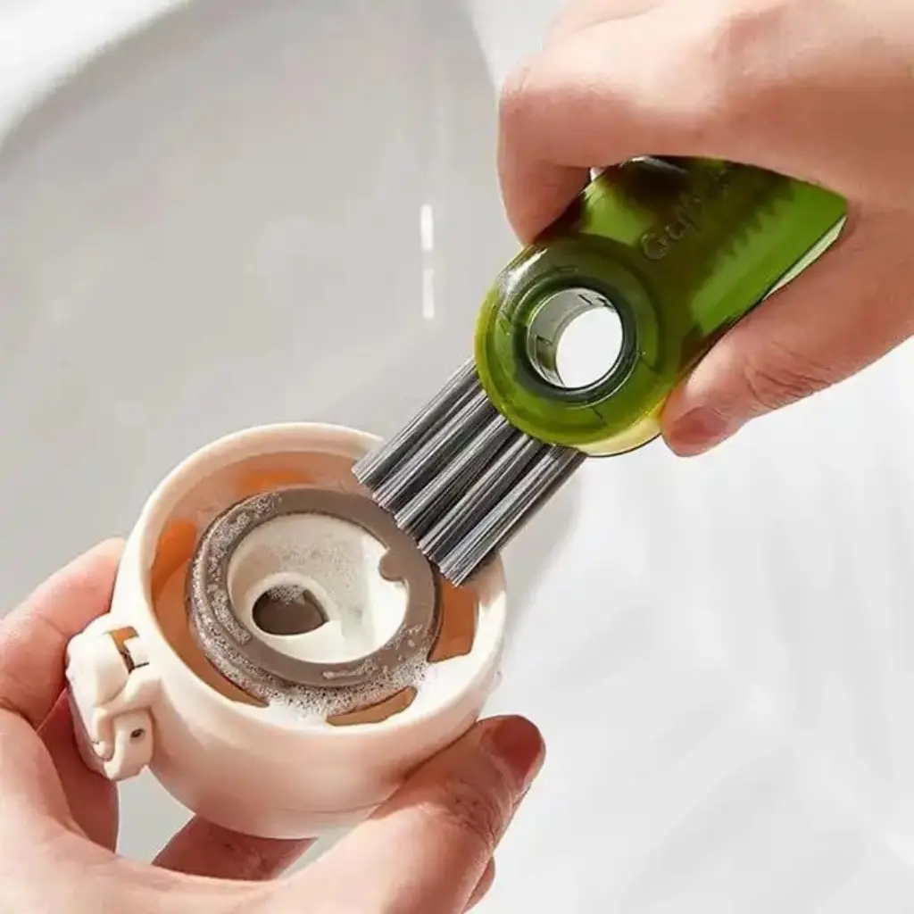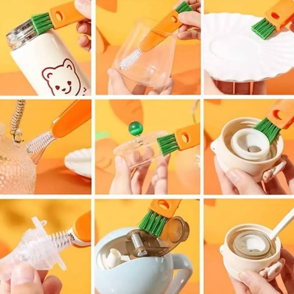 This compact cleaning brush set features detachable heads to tackle every corner of bottles, cups, and lids. Designed for hygiene and efficiency, it cleans hard-to-reach areas, including baby bottles and blender crevices. Eco-friendly and space-saving, it’s perfect for your kitchen essentials.
