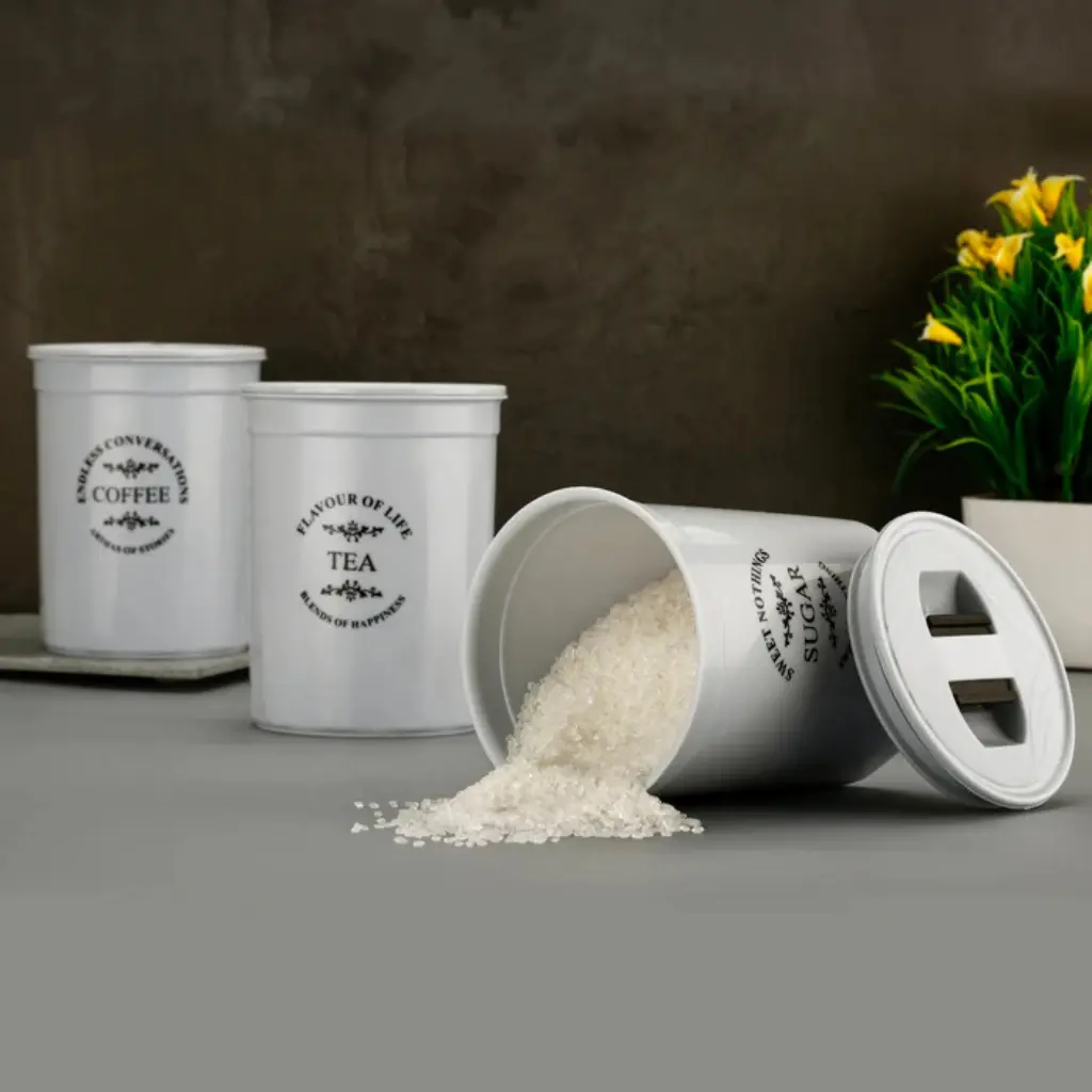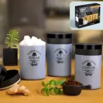 Keep your kitchen organized and stylish with this 3Pcs Airtight Tea, Coffee, Sugar Container Set. Featuring a unique damru-shaped design, these multicolor plastic jars are freezer-safe, dishwasher-safe, and easy to clean. Perfect for storing tea, coffee, sugar, dry fruits, snacks, and more, the airtight seal ensures long-lasting freshness and flavor retention. Pre-labeled for convenience, this multipurpose set is a must-have for every Indian household.