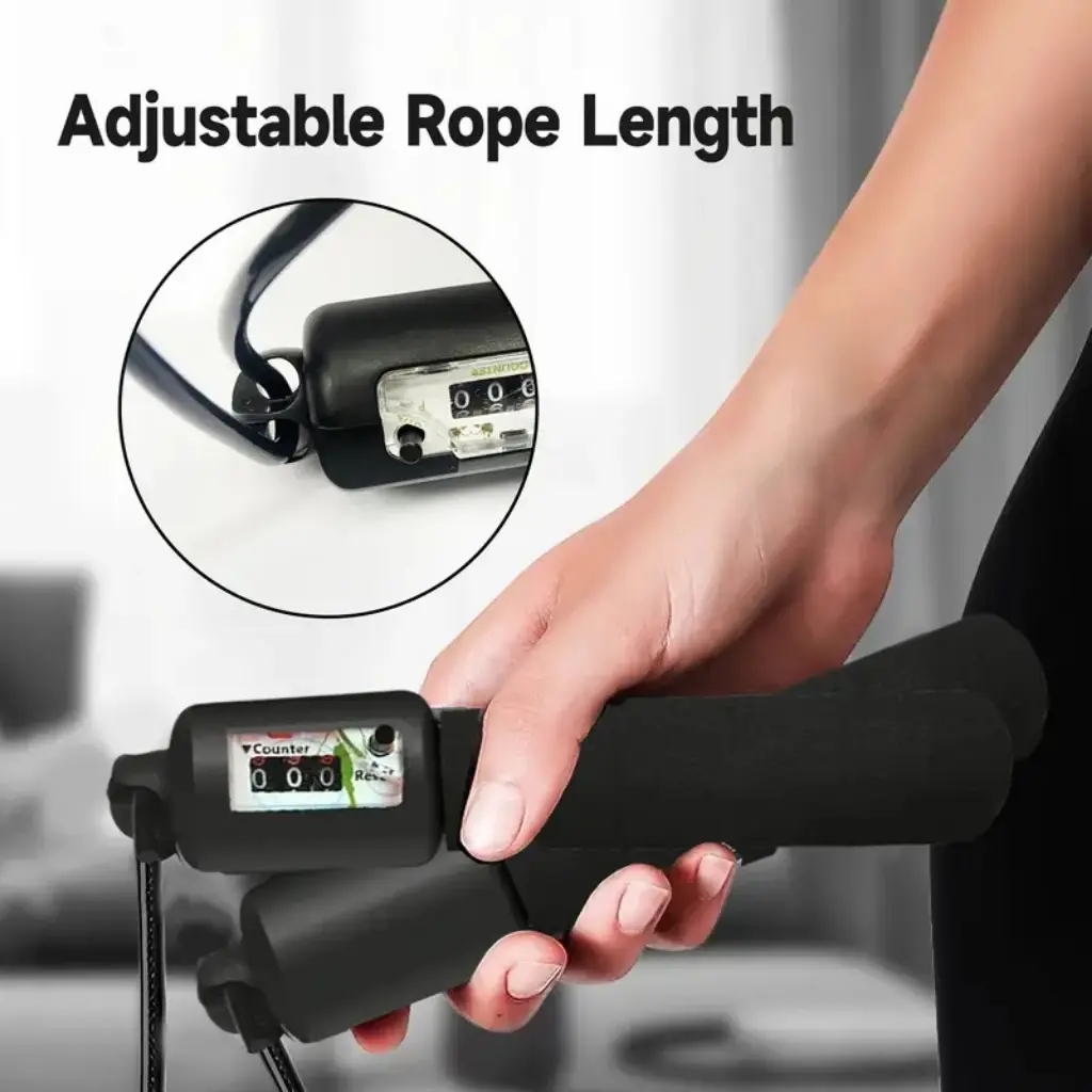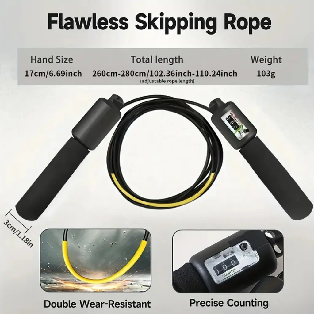 Track your workout with the Electronic Counting Skipping Rope. Featuring a built-in counter, this jump rope helps you keep track of your skips effortlessly. With adjustable length, soft sponge handles, and high-quality bearings for smooth spins, it’s perfect for fitness enthusiasts of all levels.