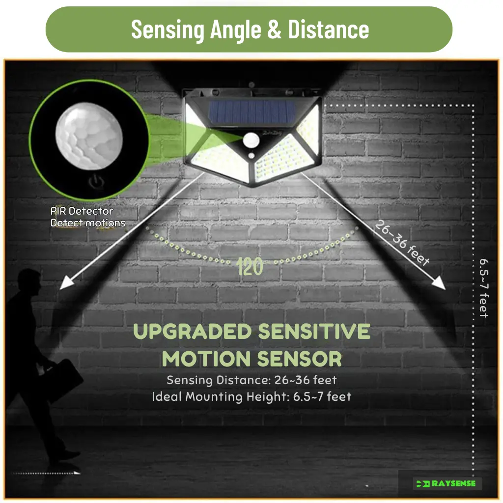3 Lighting Mode System & 120° Sensor Range