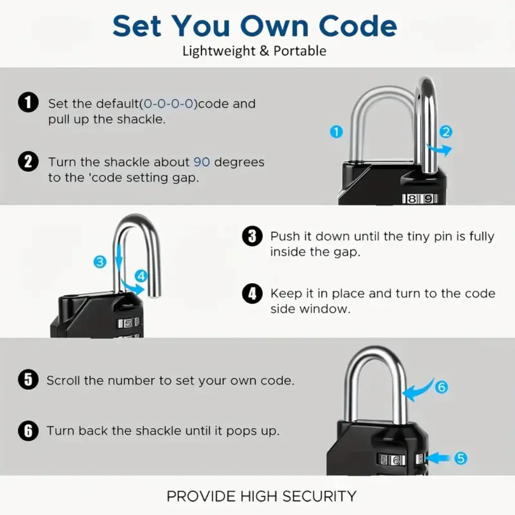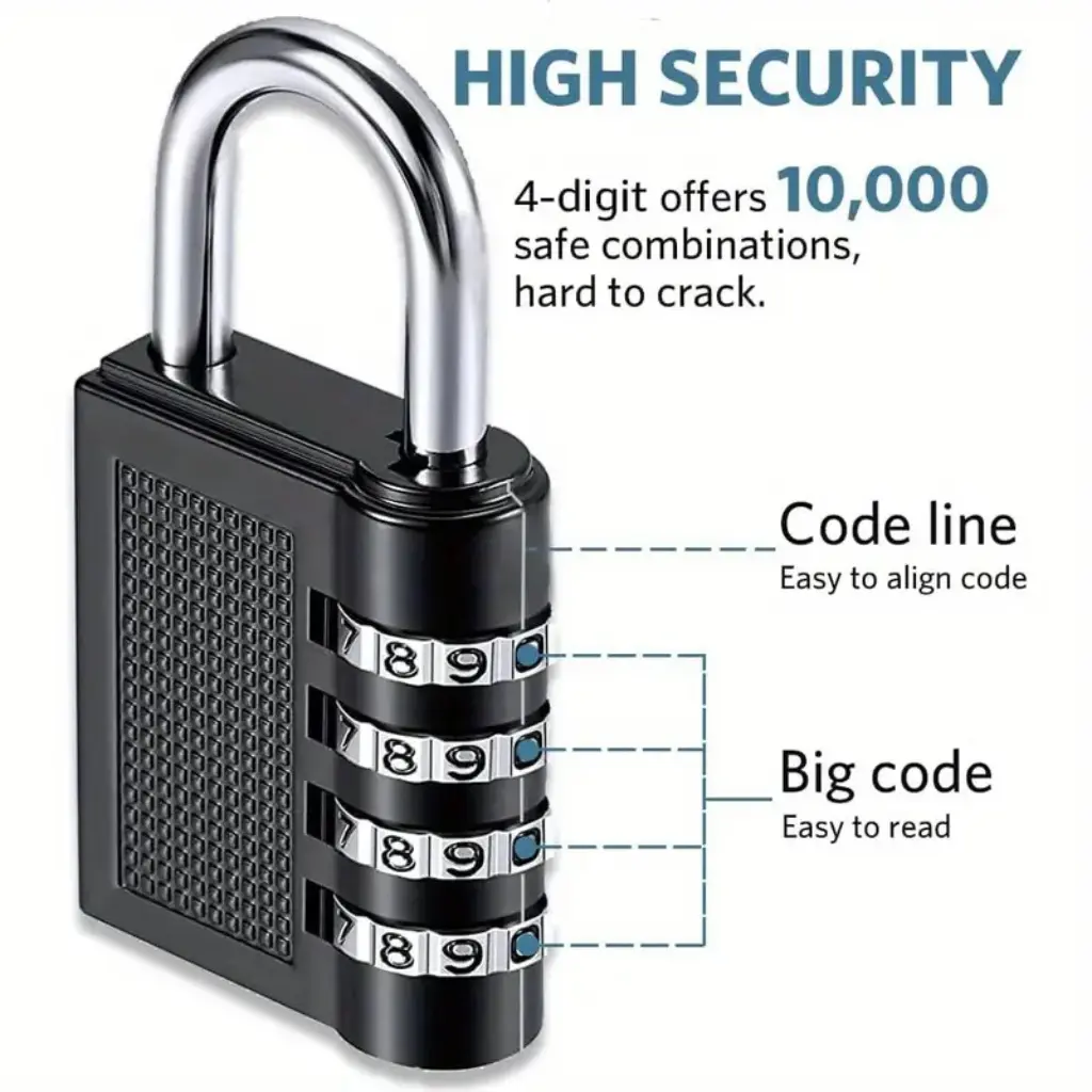 Upgrade your security with this durable 4-digit combination padlock. Say goodbye to lost keys and enjoy the convenience of keyless locking. Ideal for securing lockers, gates, bags, and more, this lock ensures robust protection with its high-strength build and easy-to-use design.