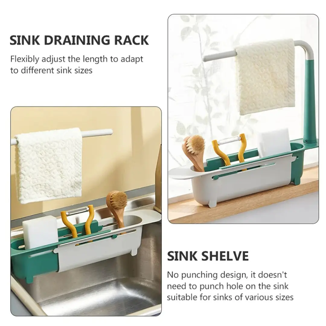 Transform your kitchen sink into a space of perfect order! Say farewell to the mess of sponges, scrubbers, and dishcloths, and welcome a neat and organized setup with our 2-in-1 Telescopic Sink Storage & Rack Holder. Whether you prefer a minimalist kitchen or value practicality, this is the ideal solution to keep your essentials dry, organized, and easily accessible.